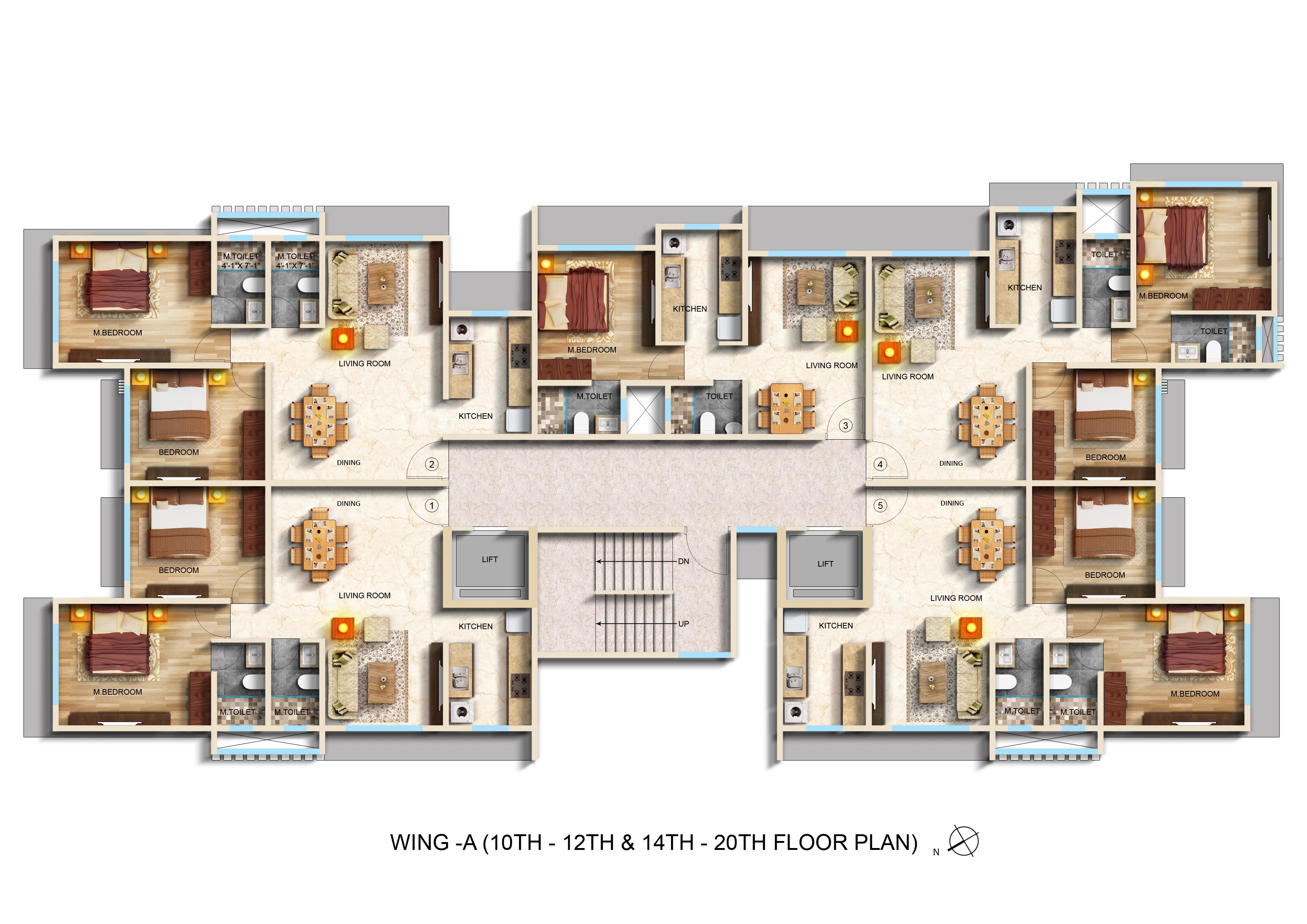 A Magnificent Structure Kissing The Skyline Of Chembur With 2 Buildings Of 20 Storey. The Building Structure Comprises Of Ground Level Car Parking, 1st Level Podium Parking, 2nd Level Podium Garden Space Along With A 2000 Sq .Ft. (Approx.) Club House. There Are 5 Flats On A Floor In Each Residential Wing With 2 Lifts. The Commercial Structure Is Designed To Accommodate 6 Shops At Front, 1 Dispensary At The Side And A Commercial Unit On The 1st Level.
